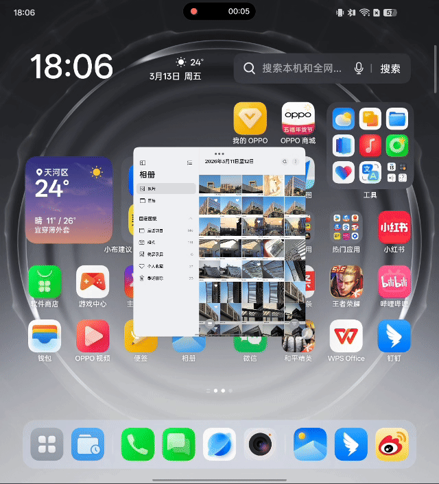 更重要的是,Find N6将折叠屏的大屏优势真正转化为生产力。基于ColorOS 16,其深度融合全场景AI能力,打造“折叠最强AI生产力”。其中,“全景自由窗”分屏方案支持「一二三四」手势丝滑操控,多任务处理更加高效直观。