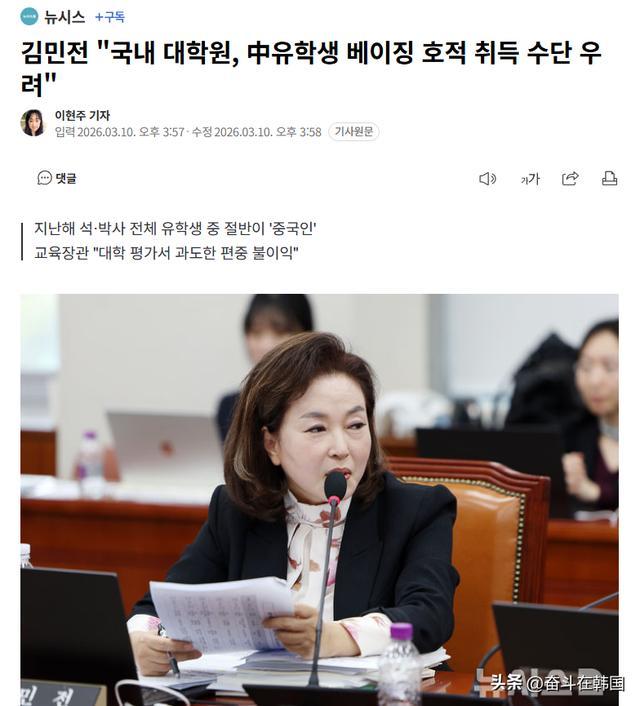 金敏全议员表示:“如果韩国国内的研究生院沦为特定国家制度利用的工具,这将是一个严重的问题。我们必须重新审视外国学生的研究生选拔机制。”