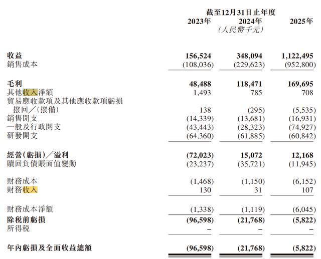 2023年至2025年,承泰科技的收入分别为1.57亿元、3.48亿元、11.22亿元,三年间收入规模扩大近7倍。同期,该公司分别录得净亏损9659.8万元、2176.8万元、582.2万元,三年累计亏损达1.24亿元。