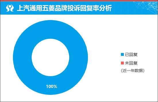 在衡量新车售后服务口碑方面,我们将通过企业对于车主投诉的回复情况进行分析,相对客观地对于新车未来的售后服务口碑有所预判。据车质网数据显示,近一年上汽通用五菱品牌投诉回复率为100%,可见厂家对于车主的诉求重视程度非常高。