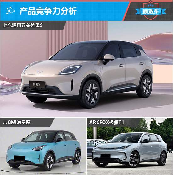 在纯电小型车市场,上汽通用五菱缤果S将会直面吉利银河星愿与ARCFOX极狐T1两大劲敌。接下来,我们将通过对比分析,看看它能否抵抗住这两款竞品车型的冲击。