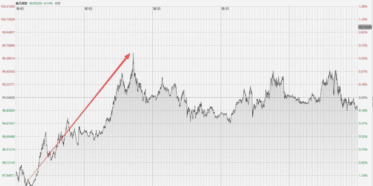 但是在战争刚刚启动的仅仅一周时间里,美元指数就大幅度上涨了1.23%,最高甚至达到了99.68。