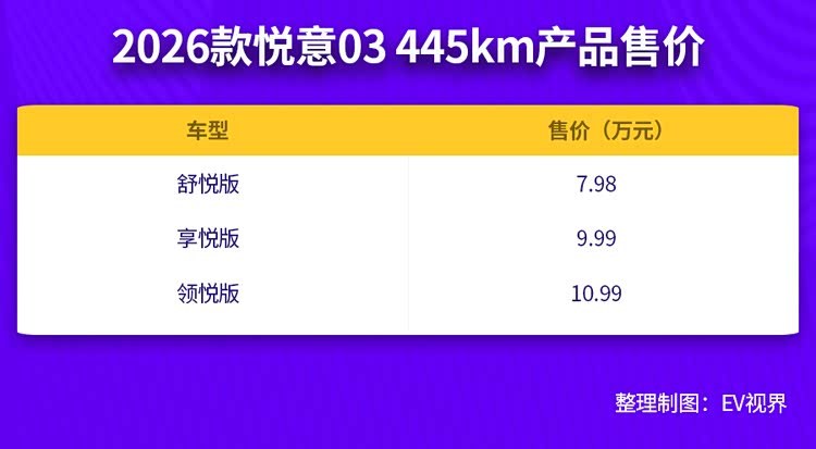 近日,实力演员张若昀直播助阵主题为“大大大纯电家享SUV”焕新而来的2026款 悦意03(参数|询价)上市发布会隆重举行。该车型此次共推出了445km、565km两种续航共计6款车型,官方指导售价为7.98万元-11.99万元。2026款悦意03带来全新晨晖金车色、晨曦白内饰色等20余项升级专业炒股配资网,让用车更舒心、开车更省心、养车更安心。