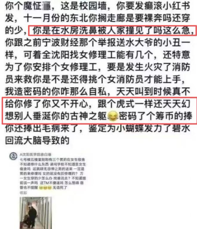 女大学生吐槽男工进女寝,被嘲:“你那虎式身材,谁爱看?”