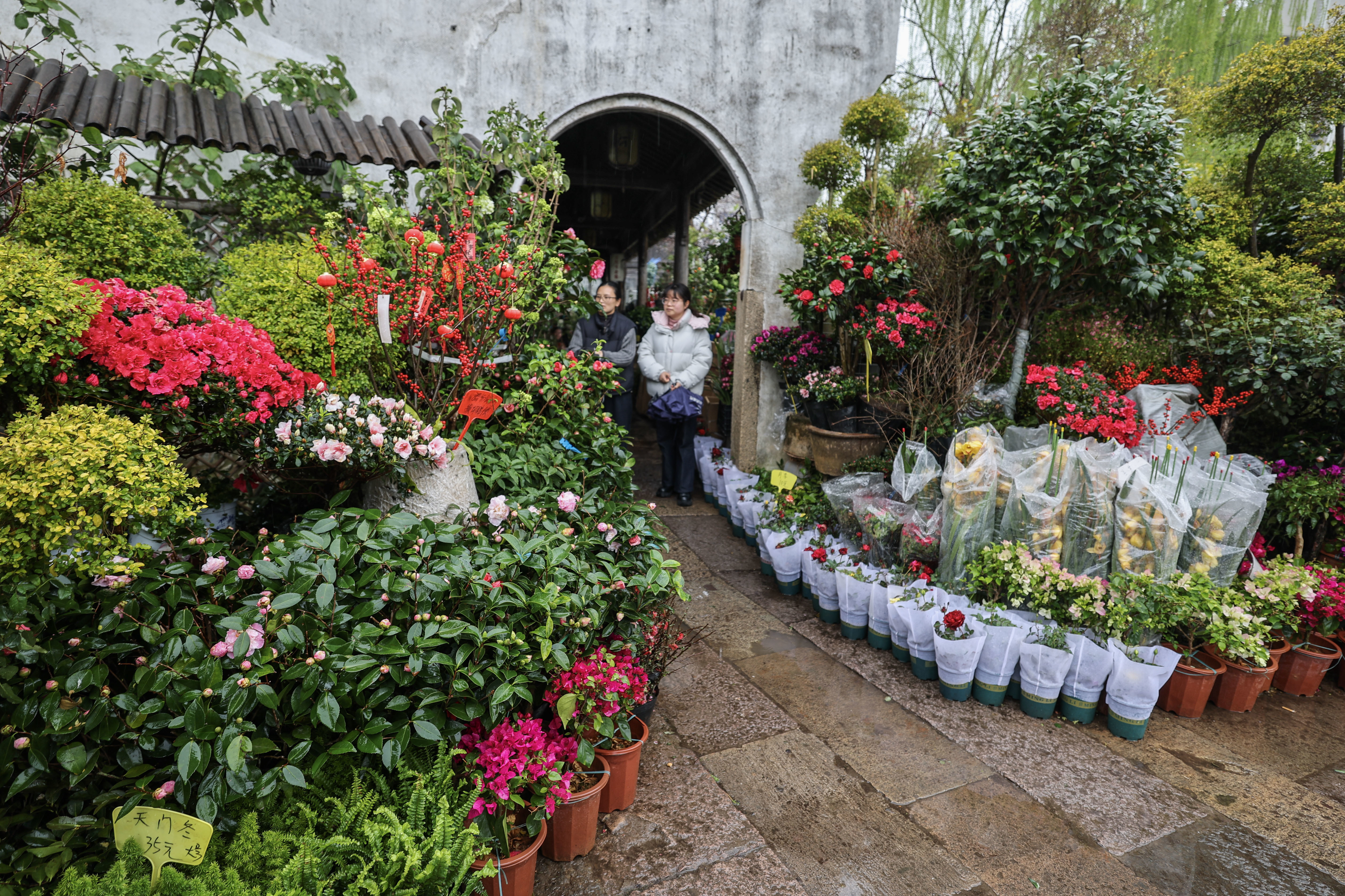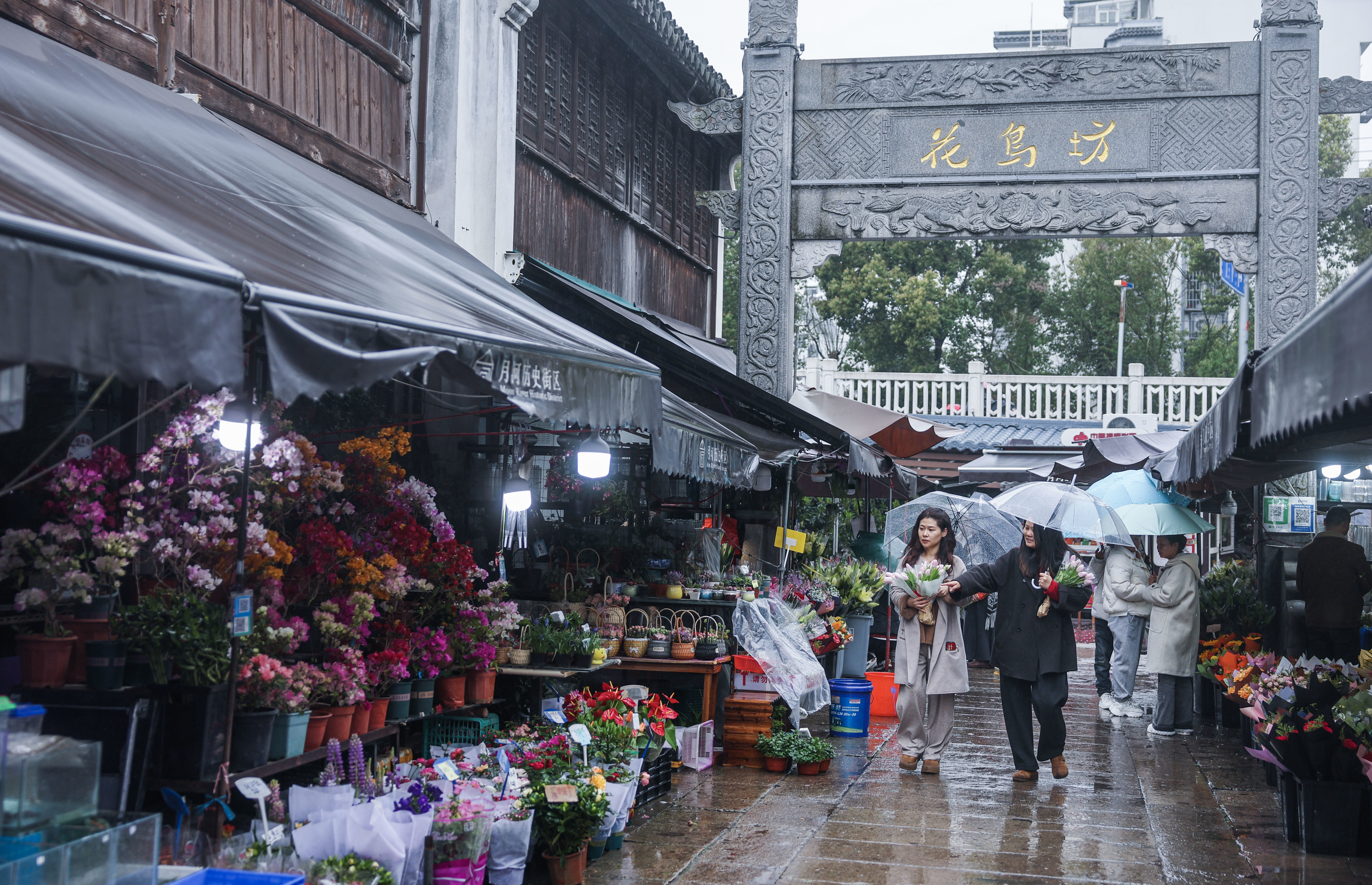 这是月河历史街区的鲜花市场(3月24日摄)。新华社记者 徐昱 摄