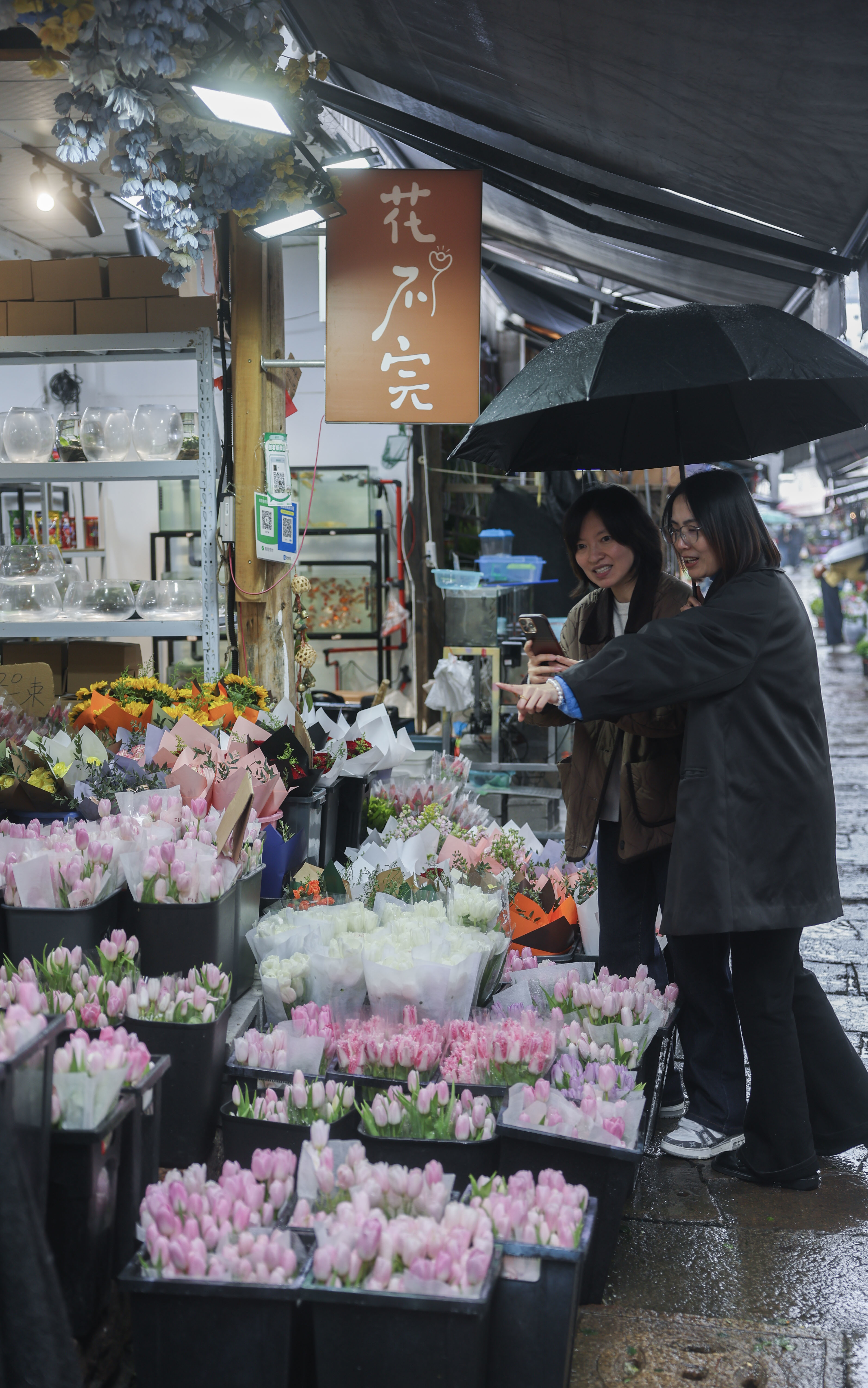 3月24日,消费者在月河历史文化街区的花店选购花卉。新华社记者 徐昱 摄